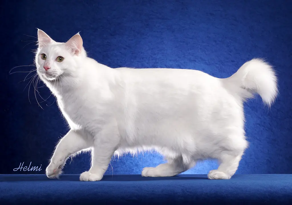 شاید در نگاه اول دم کوتاه را شاخص ترین ویژگی این گربه بدانید، اما در واقع سر و ساختار بدنی آن بیش از هر چیز جلب توجه می کند. پیشانی برجسته و گوشتی، حالت خاصی به چشم ها می دهد که تقریبا بادامی شکل هستند و به ایجاد نگاه معروف شکارچی گونه این نژاد کمک می کنند. سر، پهن و به شکل گوه ای اصلاح شده است و هیچ سطح صاف و تختی در آن دیده نمی شود، در حالی که استخوان های گونه کاملا مشخص هستند.