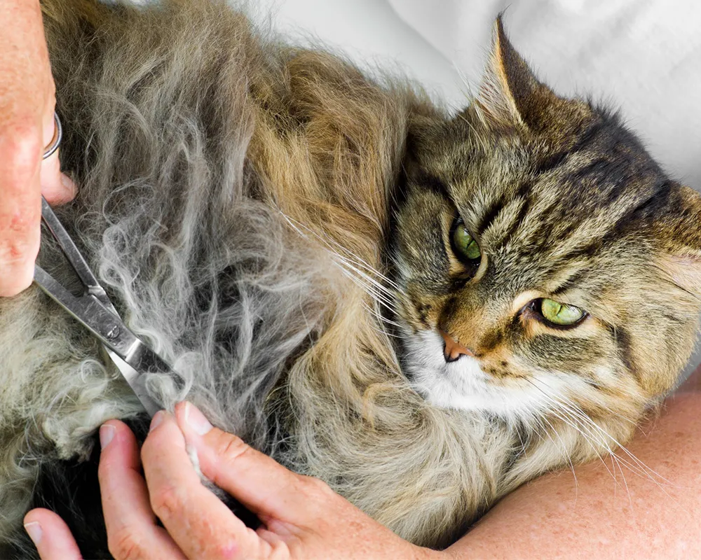 • کوتاهی مو ها در صورت نیاز: در برخی موارد، کوتاه کردن موها در فصل گرما یا برای گربه‌ هایی که تحمل شانه زدن روزانه را ندارند، می‌ تواند گزینه مناسبی برای مدیریت آسان‌ تر باشد.