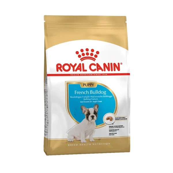 غذای فرنچ بولداگ پاپی یا French Bulldog Puppy رویال کنین برای توله سگ های این نژاد تا سن 12 ماهگی تولید شده و سازگاری بالایی با دستگاه گوارش دارد.