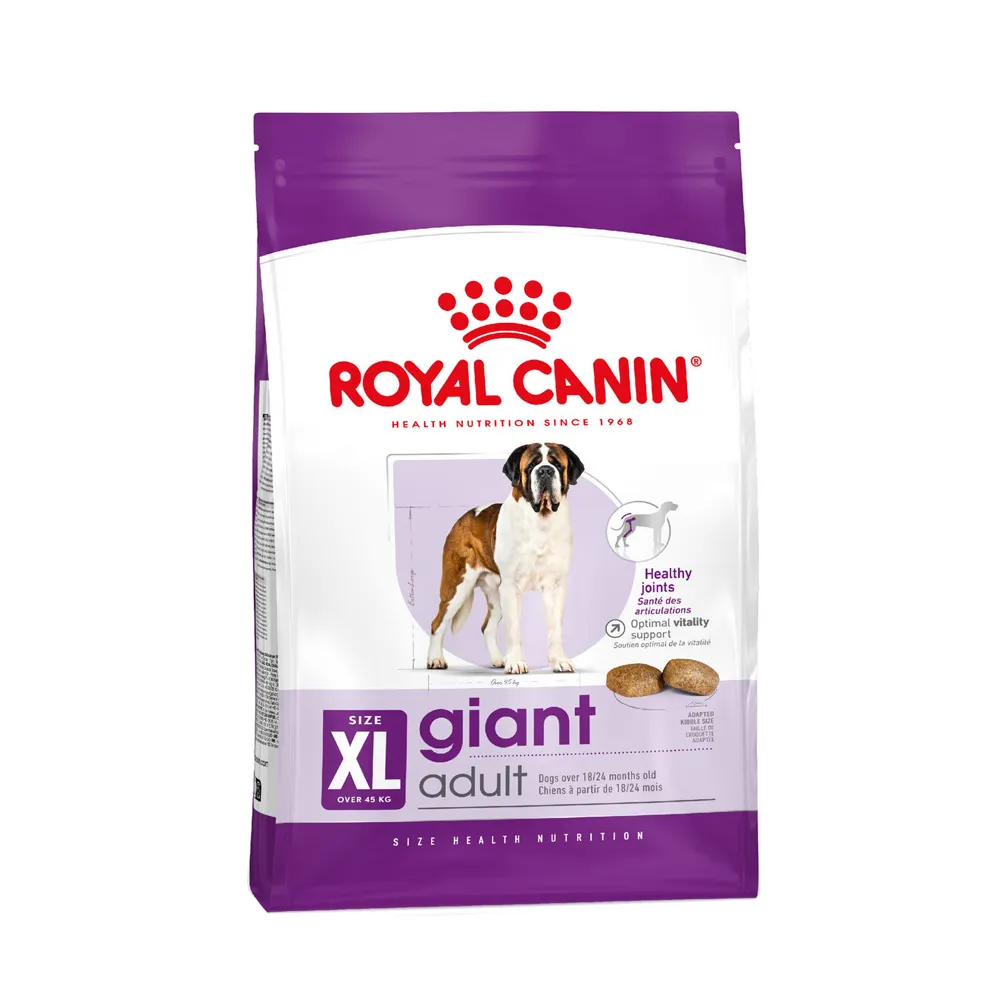 غذای سگ بالغ نژاد خیلی بزرگ یا Giant Adult جاینت ادالت رویال کنین برای سنین بالای 18 یا 24 ماه و وزن بالای 45 کیلوگرم مناسب است.