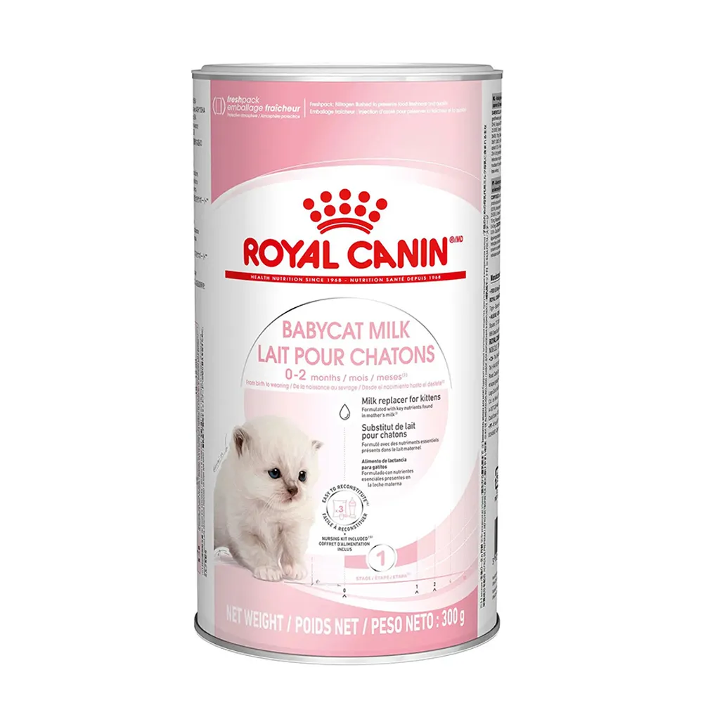 شیرخشک بچه گربه یا Babycat Milk بیبی کت میلک رویال کنین جایگزینی کامل برای شیر مادر بوده و از بدو تولد تا 2 ماهگی قابل استفاده است.