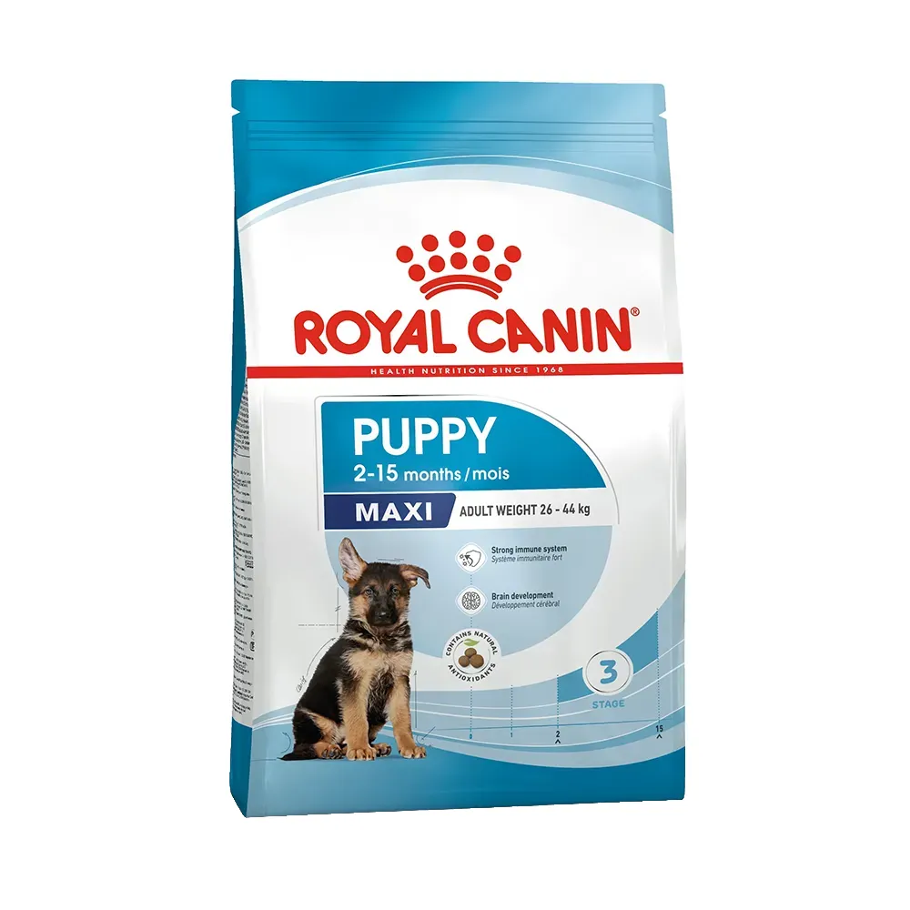 غذای توله سگ نژاد بزرگ یا Maxi Puppy مکسی پاپی رویال کنین ویژه توله ها تا سن 15 ماهگی است که وزن بالغ آن ها بین 26 تا 44 کیلوگرم باشد.