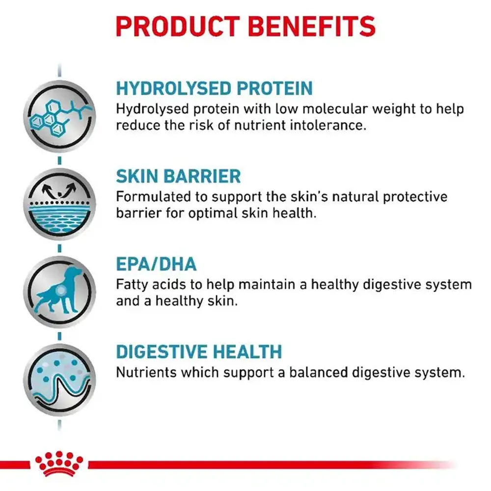 این محصول برای سگ هایی که از واکنش های نامطلوب غذایی (AFR) رنج می برند، فرمول سازی شده است. در ساخت آن از پروتئین سویا با قابلیت هضم بسیار بالا، مواد مغذی هیدرولیز شده و پپتیدهایی با وزن مولکولی پایین استفاده شده است.
