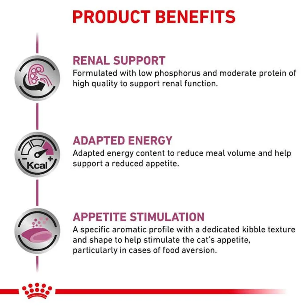 عطر، طعم، بافت و تردی دانه های غذای بیماری کلیوی سلکت گربه رویال کنین باعث تحریک اشتهای گربه های بیمار خواهد شد.