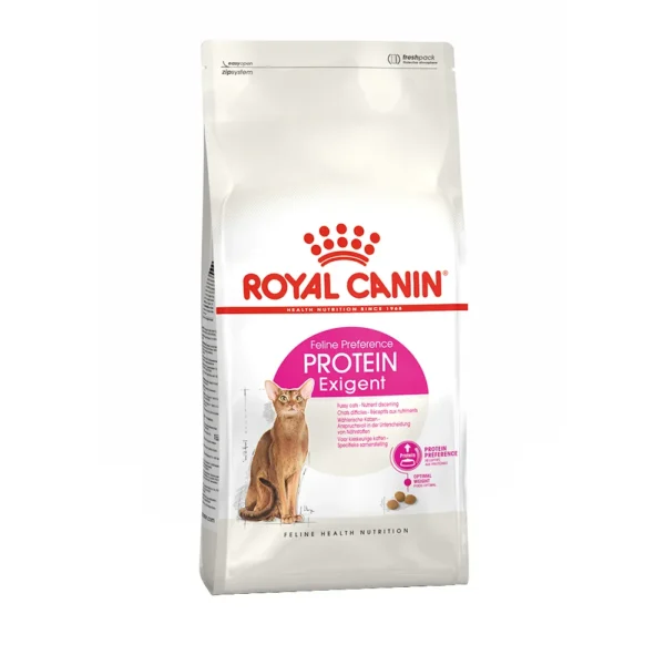 غذای گربه پروتئین اگزیجنت یا Protein Exigent بد غذا رویال کنین برای گربه های بالغ حساس به میزان پروتئین بالا درخوراک مناسب است.