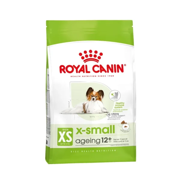 غذای سگ مسن نژاد خیلی کوچک یا X-Small Ageing ایکس اسمال ایجینگ +12 رویال کنین به بهبود سلامت قلب کمک می کند. این محصول طعم بسیار عالی و دانه بندی ریز دارد.