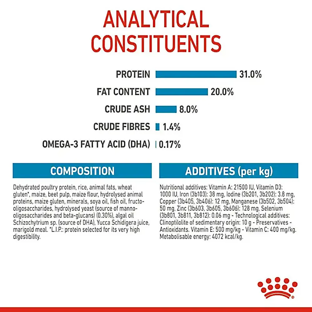 این غذا حاوی ترکیبی ازپروتئین های با کیفیت و پروبیوتیک ها است که به حمایت از گوارش و تعادل فلور روده کمک کرده و در نهایت منجر به افزایش چشمگیر کیفیت مدفوع خواهد شد. تمامی مواد مغذی موجود در این غذا دارای هضم بالایی هستند.