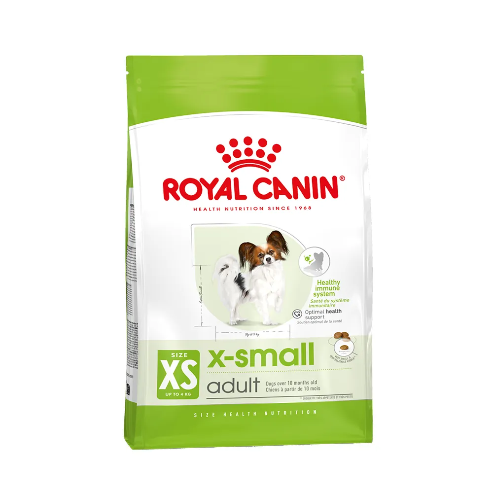 غذای سگ خیلی کوچک رویال یا Xsmall Adult ایکس اسمال ادالت رویال کنین ویژه سگ هایی با سن بالای 10 ماه و وزن کمتر از 4 کیلوگرم است.