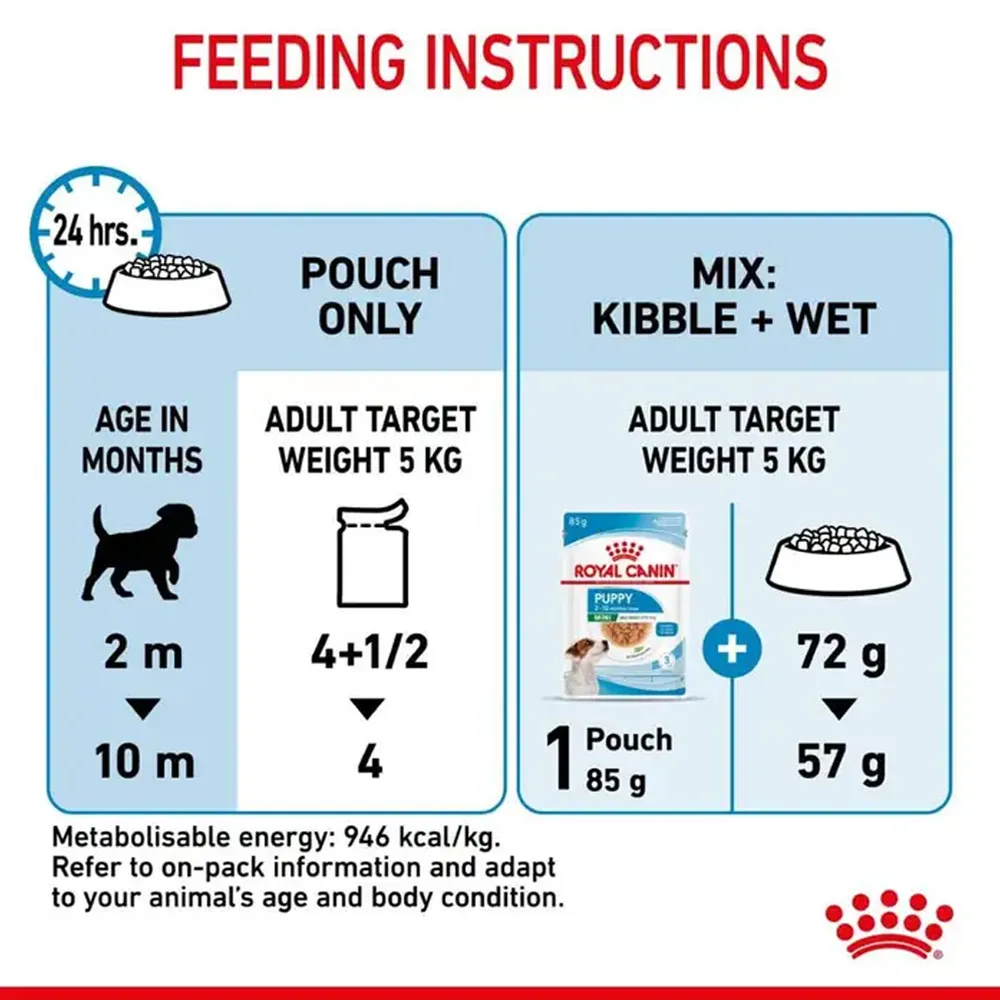 پوچ توله سگ کوچک یا Mini Puppy Wet مینی پاپی وت رویال کنین مخصوص توله های زیر 10 ماه است که وزن بالغ نژاد آن ها بین 1 تا 10 کیلوگرم باشد.