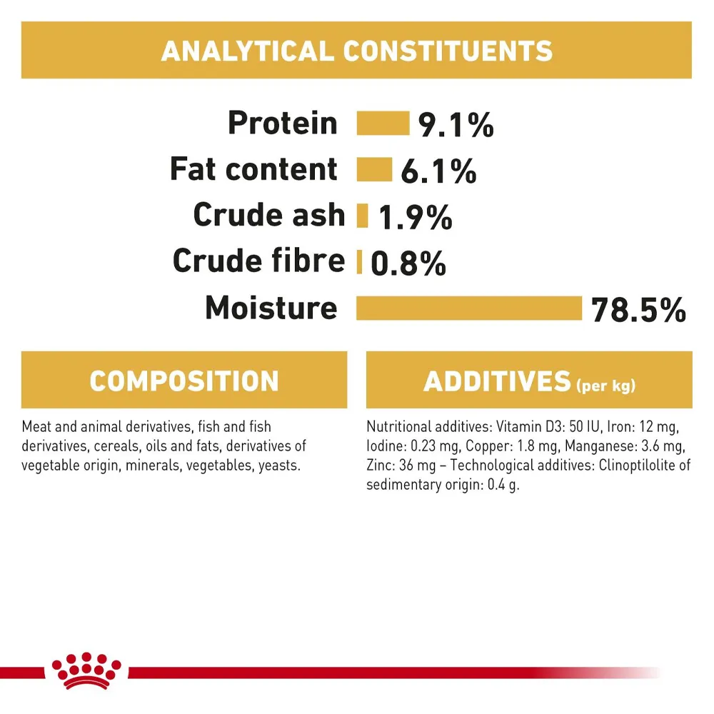 غذای پوچ گربه پرشین رویال کنین دارای طعمی عالی و بافتی منحصر به فرد برای بالا بردن سازگاری و علاقمندی گربه ها به آن است. همچنین برای بهبود سلامت دستگاه گوارش، در این غذا از پروتئین های با قابلیت هضم بالا و میزان مناسبی از ترکیبات حاوی فیبر استفاده شده است. علاوه بر این، حاوی میزان دقیقی از ویتامین ها و مواد معدنی است.
