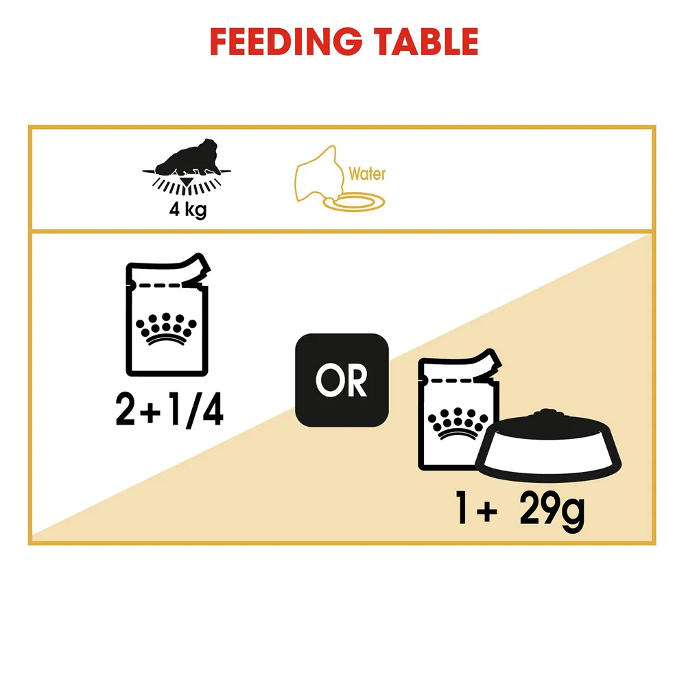 گربه های نژاد پرشین دارای بلندترین و پرپشت ترین موها در میان تمامی نژادهای گربه هستند. به همین دلیل، غذای پوچ پرشین رویال کنین حاوی ترکیبی از انواع مواد مغذی برای محافظت از سلامت پوست و رسیدن به موهایی زیبا، بلند و براق است.
